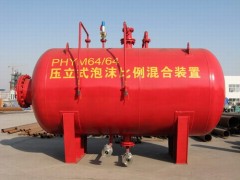 PHYM系列压力式比例混合装置是由泡沫液储罐、胶囊、压力式比例混合器、安全阀、控制阀门及一些辅助零部件组成。当消防压力水流经该设备时,比例混合器将其按比例分流,其中一小部分水进入带胶囊的泡沫液储罐夹层,挤压胶囊,置换出的泡沫液与其余主管道的消防水混合为一定比例的泡沫混合液,并输给泡沫产生设备。 PHYM系列压力式比例混合装置适用于混合比为3%或6%的各类泡沫液。