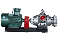 当泵工作时,主从动轴上相互啮合的螺旋套和泵体或衬套间形成一个容积恒定的密闭腔室,从泵进口法兰进入泵腔的流体介质均匀地分别流向螺杆轴的两端,然后进入密闭腔室,随螺杆轴的转动分别被送到泵体中间,两者汇合在一起,最终送达泵的出口,从而实现泵输送的目的。
