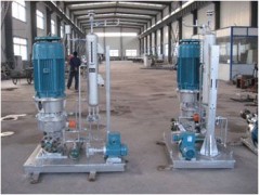 HGSB型立式高速离心泵基本结构由电动机、联轴节、增速器、密封室、泵、公用底座、润滑系统七部分组成。泵、增速箱、电动机三位一体,因是刚性结构,所以对外配管载荷的应力高、抗热冲击性强,能进行-130~260℃的高、低温流体的输送。除扩散器的喷嘴外,没有特别磨损的部位,又由于叶轮前后侧间隙也宽,所以能处理相当浓度的浆液和粘度可达500厘泊左右的高粘度液体。由于高速泵转速高、流量小、扬程高的特点,所以在性能上它可代替多级离心泵或往复泵,而又克服了许多多级离心泵或往复泵的各种缺点。