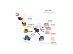 砂石生产线的流程大致为:(料仓) ---- 给料机 ---- 鄂式破碎机 ---- 反击式破碎机 ---- 振动筛 ---- (可成成品)。其中间的机器之间可用输送机相接。