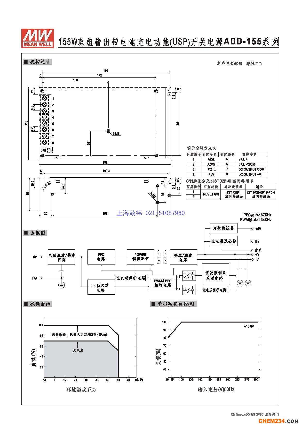 ADD-155A 155W 13.8V10.5A +5V3A 双路输出带浮充电(UPS功能)及PFC明纬开关电源 苏州产 2年质保