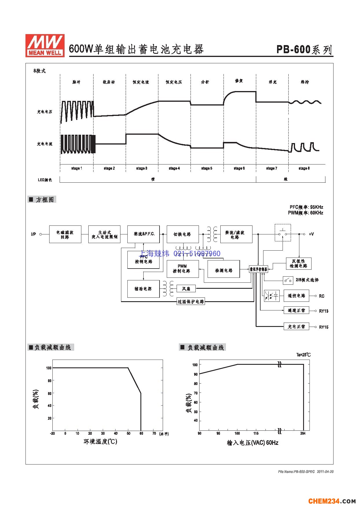 PB-600-48 600W 57.6V10.5A 单路输出带PFC明纬2-8段式智能电池充电器 3年质保 台湾产