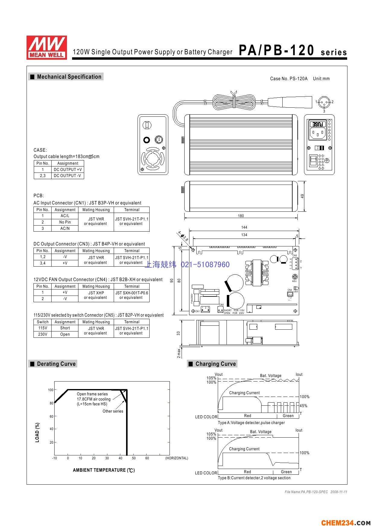 PB-120P-13C 120W 13.8V7.2A 单路输出便携型带PFC功能明纬电压分段式充电器 台湾产 2年质保