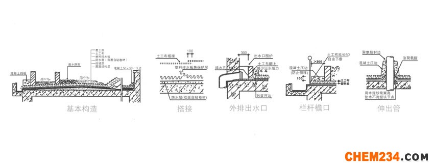 2. 屋顶绿化和室外车库顶板绿化可配多孔渗水管使用,这样能把排水板中排出的水集中排到附近的下水管或附近城市下水道。