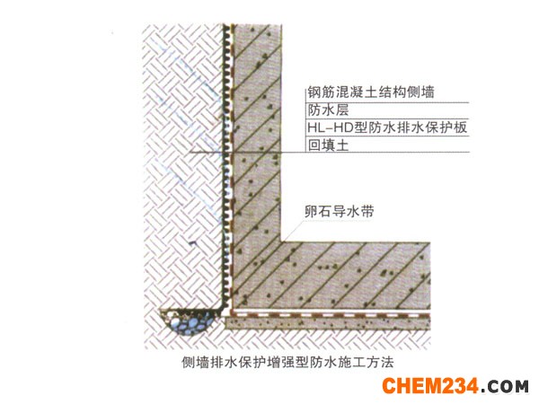 (HDPE)排水防水保护板形成地下室外墙与回填土之间的排水隔离层,可将任何渗水排出,确保地下室干爽。