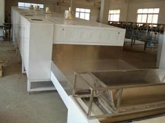 详细信息 微波干燥设备主要应用于纱线、布料、化学纤维、面料、服装、辅料、染料、毛沙、印染等干燥。用于纺织行业纱线团或玻璃纤维团的烘干,快速、高效,真正实现完全自动化控制连续生产。 ■ 加热速度快,物料干燥时间短,且均匀性好; ■ 节能高效,无额外的热量损失,故热效率极高; ■ 易于控制,操作灵活方便,微波功率和传输速度均可调,是一种安全可靠的高新技术产品; ■ 无粉尘污染,易清洗,符合"GMP"要求; 设备结构及设计要点 微波干燥设备可采用隧道式箱体结构和箱式结构。该装置系统包括微波源、波导馈能输送部件(波导、环形器和水负载);玻璃纤维纱筒的输送部件;微波防泄露部件,以及运行操作控制柜等。根据纱线和玻璃纤维造型,微波工作频率为915MHZ和2450MHz,玻璃纤维拉丝成型时,其表面均可能有极细微的裂纹,由于微波加热水蒸气由里向外层迁移,纱筒内层存在较大蒸汽压力的动力性能,造成玻璃纤维中添加的玻璃浸润剂向玻璃纤维表面裂缝渗透,比传统的加热方式更有效,于是玻璃纤维的强度也将提高。传统加热干燥时间长,热介质温度高,玻璃纤长时间处于高温状态下,对其强度产生较大影响,而微波干燥时间短温度低对其强度的影响很小很小,含水率低,成品含水低于 1% 。 |