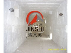 陶瓷纤维折叠块,是用对应材质的陶瓷纤维针刺毯,按纤维组件结构、尺寸,在专用机械上加工而成。在加工过程中,均保持一定比例的压缩量,以保证陶瓷纤维折叠块壁衬砌筑完毕后,由于每块陶瓷纤维折叠块在不同方向的膨胀,使陶纤折叠块之间相互挤成一个无缝隙的整体。