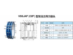 双法兰传力接头的型号有VSSJAF型、VSSJAFC型、VSSJA-2型、C2F型、VSSJAFG 型等等;