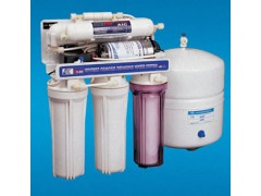 功能:利用超静压力泵产生高压渗透,使水分子和离子态的矿物质元素通过一层逆渗透膜,而溶解在水中的绝大部分重金属、有机物以及细菌、病毒等则无法透过逆渗透膜被截留(逆渗透膜上的孔径只有0.0001um,而病毒的直径一般有0.02-0.4um,普通细菌的直径有0.4-1um)