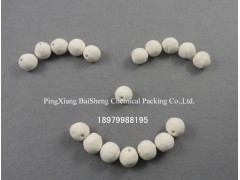 KK开孔瓷球是在惰性瓷球基础上开发的新产品,它以球体直径为轴心进行开孔,既具有如惰性瓷球那样一定的机械强度、化学稳定性和热稳定性,又增加了比表面积和空隙率,从而增加了物料的分散性和通量,降低了系统的阻力。 KK开孔瓷球广泛应用于石油、化工和天然气等行业替代惰性瓷球作催化剂的支撑覆盖的垫层材料和充当塔填料使用。