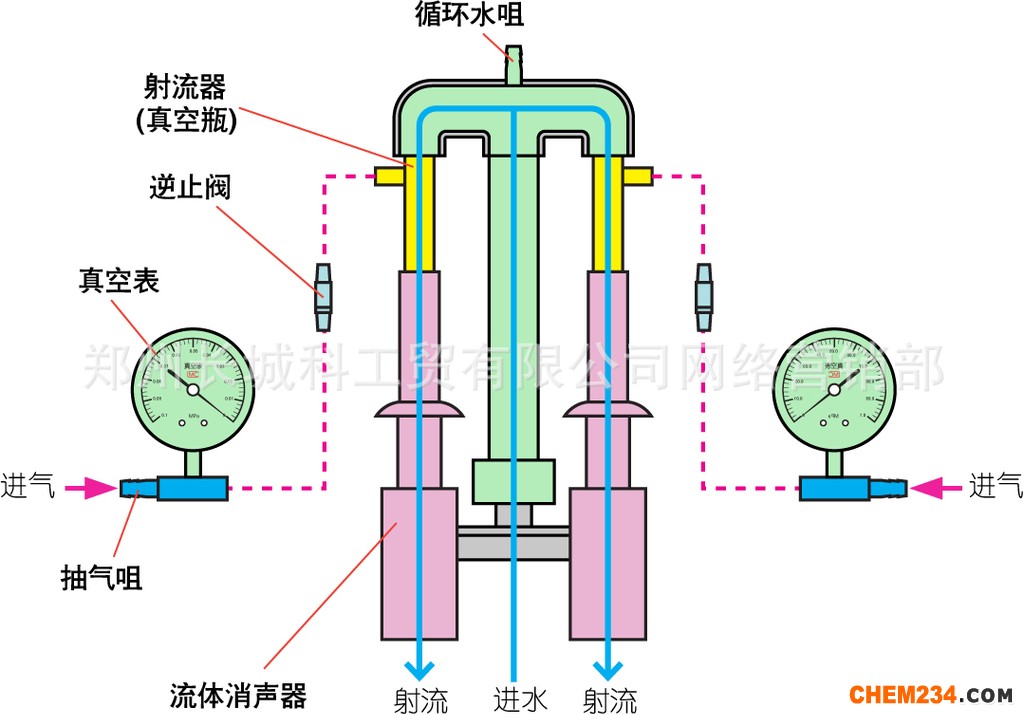 循环水式多用真空泵是以循环水作为工作流体,利用射流产生负压原理而设计的一种新型多用真空泵,为化学实验室提供真空条件,并能向反应装置提供循环冷却水。
