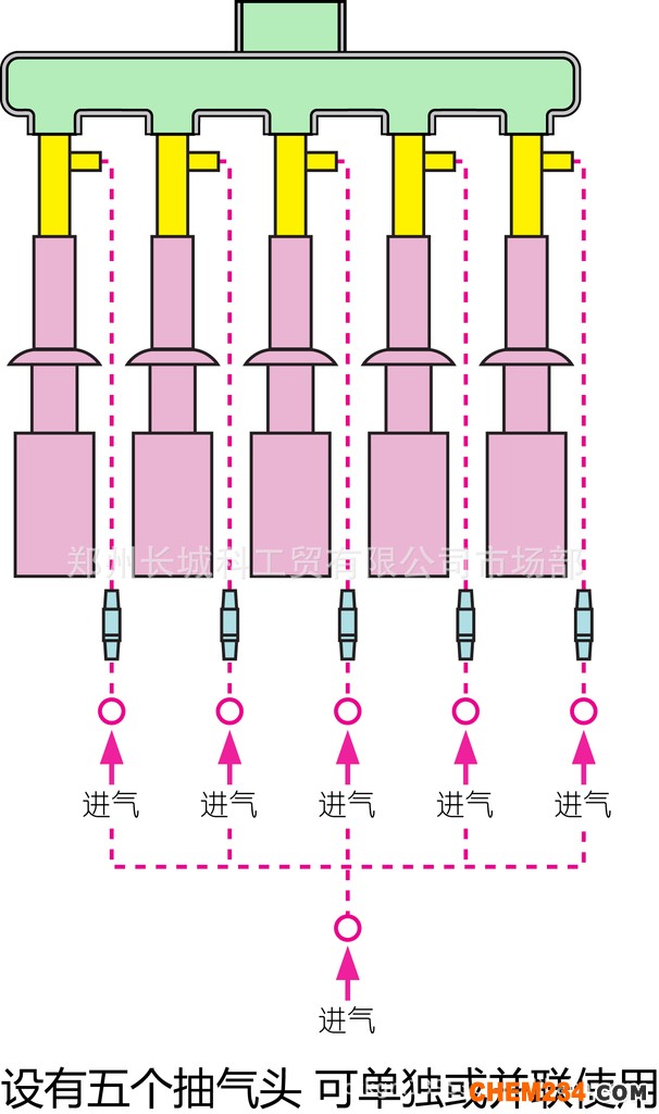 SHB-B95循环水式多用真空泵有五抽头,可单独或并联使用。用五通管(选配)并联后抽气量大,可满足大型旋转蒸发仪或反应釜的需要。