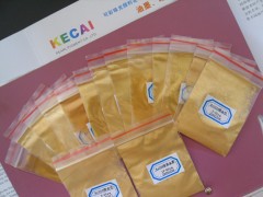 广东可彩珠光颜料有限公司3--金色珍珠光泽系列效果颜料除涂在云母表面包覆二氧化钛外,还增加了一层氧化铁包覆层,依靠精确控制二氧化钛和氧化铁不同的包覆厚度,产生各种具有较强金属光泽和高饱和度色彩的金色色彩,其色相极好,色谱齐全,在任何场合完全耐高温、耐酸、耐碱、耐化学药品性能、耐光照,可以完全取代金属颜料(如铜金粉等),克服后者易氧化、变色、易燃等缺点。可彩金色珍珠金属光泽效果颜料色相齐全,可同时相互配色使用,不同的型号和比例相混合或与银白色系列相混合,会得到您所需的理想金色珍珠、金属光泽效果。