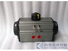 KFF科菲AT/SR气动执行器是将输入的气压信号转换成90度,再以扭转矩形形式输出的执行机构。该系列气动执行器是一种外型小、性能高的的执行结构,分为双气控型和单气控型两种,与角行程型控制阀组合可用于调节和开关的场合,也可用于其他回转运动的场合。