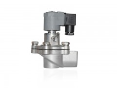 该电磁脉冲阀为直角型脉冲阀,其进气口与出气口之间的夹角为90℃,亦称隔膜阀,是脉冲袋式除尘器清灰喷吹系统的压缩空气“开关”,受脉冲喷吹控制仪输出信号的控制,对滤袋逐排(室)喷吹清灰,使除尘器的阻力保持在设定的范围之内,以保证除尘器的处理能力和收尘效率。