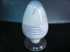 品 名:4-羟基香豆素 英文名:4-Hydroxycounarin 别 名:对羟基香豆素,4-羟基香豆素,4-羟基-1-苯并吡喃-2-酮 分子式: C9H6O3 CAS No.:1076-38-6 分子量:162.14 性状:白色或类白色结晶粉末 含 量:≥98.0% 标 准:企业标准 用 途:本品是医药中间体,用于生产等抗凝血药物。这类的 4-羟基香豆素的衍生物,是维他命 K 的拮抗剂 ,也是一种口服抗凝 血药物。此外4-羟基香豆素也是一些杀鼠药的中间体,在抗癌药物的发展上,极具有研究价值。4-羟基香豆素也是一种香料,香豆素 类在植物界分布广泛。