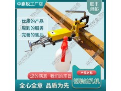1、首先要将钻机水平卡在钢轨上,调整卡头前部紧定螺栓,压下锁紧凸轮手柄,使之锁定牢固。