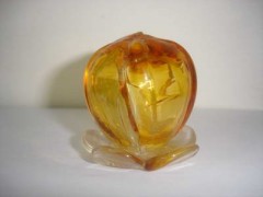 金茶水外观呈深褐色的液体,使用时用喷枪或毛刷刷在清洁好的玻璃工件上,然后放入窑炉内,从室温升温到520℃–580℃的温度,恒温10-20分钟后就可以慢慢退火,就成了一件金茶色的玻璃制品了,金茶水这种彩色膜与釉结合牢固、结构致密,不易脱落,光亮如镜,化学稳定性好。