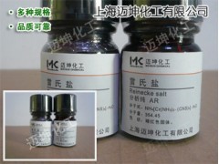 详细信息 中文名称:雷氏盐 英文名称:Reinecke salt 别 名:四硫氰基二氨络铬酸铵,赖纳克氏盐,利英钠克盐,利英纳克盐,硫氰酸铬铵,二氨基四硫代氰酸铬铵,二氨合四氰硫基(硫代氰酸基)铬酸铵(III)一水化物。 CAS NO:13573-16-5 分 子 式:NH4[Cr(NH3)2(SCN)4]?H2O 分 子 量:354.45 规 格:优等品/分析纯AR 包 装:多种包装 产品性状: 本品选用优等原料制成,属于优等品质。 本品为深红色结晶或红色结晶性粉末。 溶于热水和乙醇,微溶于冷水。在水溶液中分解游离氢氰酸而成蓝色。 室温时分解约在二周内发生,温度高于65℃时速度加快。在沸乙醇中有相似分解发生。 熔点268~272℃(分解)。 主要用途: 1)雷氏盐用作分析试剂对氯化胆碱灵的测定; 2)雷氏盐用作Cu+, Hg2+ 和 Cd2+的显色剂和沉淀剂,环保测定试剂; 3)雷氏盐用作比色测定胆碱及其他有机碱; 4)雷氏盐用作伯胺、仲胺、脯氨酸、羟基脯氨酸和某些氨基酸的沉淀剂; 5)雷氏盐用于新材料开发。 价 格:以当天报价为准(欢迎来电查询) |