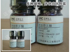 详细信息 中文名称:水合茚三酮 英文名称:Ninhydrin 别 名:水合三酮氢茚,三酮氢茚,水合,茚三酮,水合,水合印三酮,苯并戊三酮,苯并环丙三酮,宁海群,2,2-二羟基茚-1,3-二酮。 CAS NO:485-47-2 分 子 式:C9H6O4 分 子 量:178.14 规 格:分析纯 AR 包 装:多种包装 产品性状: 本品选用优等原料制成,属于优等品质。 本品为淡黄色结晶性粉末,带1分子结晶水。 溶于醇;水,微溶于醚和氯仿。 见光或露置空气中逐渐变色。240~245℃之间熔化分解。 主要用途: 1)水合茚三酮可用作氨基酸、蛋白质及蛋白胨的灵敏显色试剂; 2)水合茚三酮可用于纸层析及滤纸电泳的氨基酸和肽的测定; 3)水合茚三酮可用于氨基酸自动定量分析; 4)水合茚三酮用于实验室化学分析; 5)水合茚三酮用于新材料开发。 价 格:以当天报价为准(欢迎来电查询) |