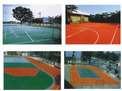 要求户外曝晒耐久性强的地面、墙面,耐紫外光照射不易分解或变黄,能长期保持原有光泽及色泽,特别适用于各种室外球场,体育场看台。