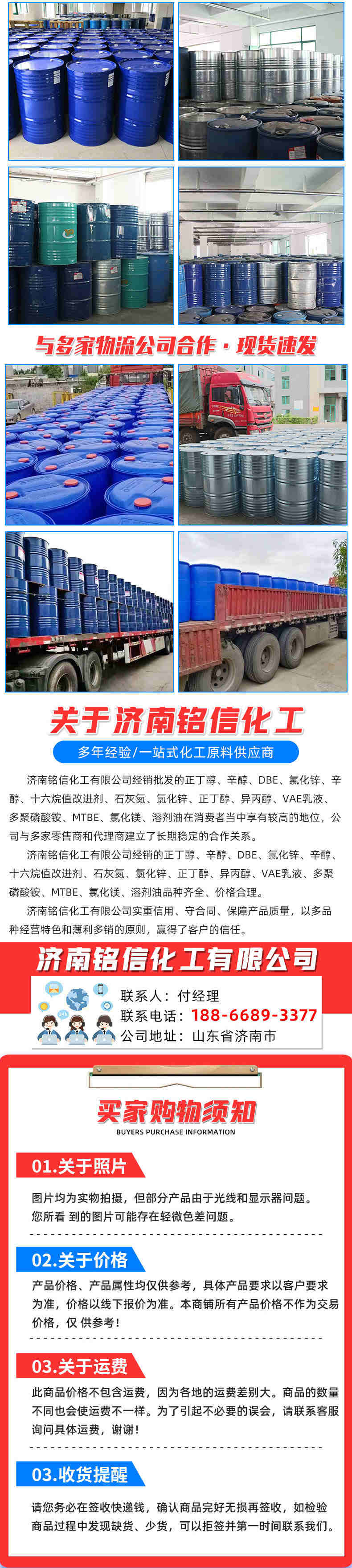 正丁醇、辛醇、DBE、氯化锌、辛醇、十六烷值改进剂、石灰氮、氯化锌、正丁醇、异丙醇、VAe乳液、多聚磷酸铵、MTBE、氯化镁、溶剂油