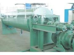 氧化铁黄烘干机,氧化铁黄烘干设备,氧化铁黄干燥机,氧化铁黄生产设备在夹套结构的壳体内有两根镶嵌着互相交错的桨片的平行回转轴,各轴上镶嵌有很多枚按一定间隔交错排列的中空扇形桨片,桨片有两种,即,进给剪切面和返回剪切面,轴低速旋转。热媒通过安装在回转轴端部的旋转接头进入中空回转轴及桨片,传热干燥后,再通过旋转机头排出机外。另外,夹套中也将导入热媒。物料从供料口连续供给,通过桨片在桨片附近进行局部搅拌,混合,同时桨片与夹套的热传导逐渐使物料干燥,物料边加热边缓慢排出。并可通过改变溢流堰口高度调节滞留时间。另外,处理物料时产生的蒸汽,可与入口进来的少量空气一起从排气口排向机外。