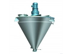 锥形双螺旋锥形混合机主要由传动装置、锥形筒、双螺旋悬臂搅拌器和出料阀等组成,其搅拌器为两条不对称螺旋,长短各一,在锥形筒内做三维复合运动,与此同事,两根螺旋还做自转运动,物料在搅拌器的作用下沿轴盘旋、提升,从而达到物料混合目地。