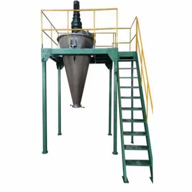 双螺旋锥形混合机是一种新型、高精度的混合设备,广泛适用于制药、化工、饲料等行业的各种粉状物料的混合。该机自转均有一套电机及摆线针轮减速机来完成,采用两螺杆非对称搅拌,使物料搅拌范围大,混合速度快,对比重悬殊,混配比较大的物料混合更为适合。