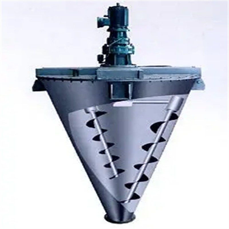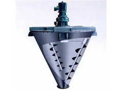 由于双螺旋的公转而使粉体沿着锥体壁作圆周运动。螺旋叶片的自转,使粉体向锥体中央排放作径向运动。粉体自锥体向上升流及螺旋外圆周表面上排出,即螺旋轴方向混合。螺旋在混合机内公转,自转的组合,造成了粉体的四种流动形式,也就是对流,剪切,扩散,渗合的复合运动。因此粉体物料在这种混合机内能迅速达到均匀的混合。