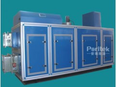 手套箱专用全新风除湿机:当手套箱内专门用于注液时,由于电解液挥发出有机溶剂气体浓度过大,不允许回风时,采用全排风即全新风的处理工艺。这时选用手套箱专用全新风除湿机。手套箱专用全新风除湿机由除湿主机和制冷机二部分组成,通过管路和阀件连接成一完整的系统