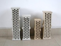 挡板砖可与蜂窝体配套使用于各种蓄热式燃烧系统,用在蓄热室加热炉的蓄热体最前端,其作用就是保护蓄热体,延长蓄热体的使用寿命。挡块砖材质有刚玉-电熔莫来石、刚玉-合成莫来石、烧结莫来石,浇注成型后经烘烤和高温烧成,外形尺寸和结构可按用户图纸要求生产,具有热震稳定性好、软化点高、抗化学侵蚀性强、耐热冲击性好等特点。