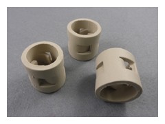 陶瓷鲍尔环填料是在陶瓷拉西环的基础上开发的一种高径相等的开孔环型填料,每层窗孔有5个舌叶,每个舌叶内弯指向环心,上下两层窗孔的位置相反错开,一般开孔面积约占环壁总面积的30%左右,使得填料塔内的气体和液体能够从窗孔自由通过,改善了气液分布,充分利用了环的内表面。陶瓷鲍尔环具有优异的耐酸耐热性能,能耐除氢氟酸以外的各种无机酸、有机酸及有机溶剂腐蚀,可在各种高温场合使用,应用范围十分广泛,可用于化工、冶金、煤气、环保等行业的干燥塔、吸收塔、冷却塔、洗涤塔、再生塔等。
