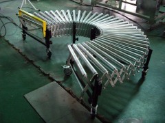 伸缩型辊筒输送机是利用可伸展的组件做机架的输送机。 基本说明:是利用可伸缩的组件做机架的输送机,机体可自由变向,改变任意角度,支腿高度可以调节,下部设有脚轮可以移动,并可按需要形成直段和圆弧段,适用于需要灵活布置的移动式无动力输送机,脚轮可带刹车,伸长长度可限位,转动件有单排辊筒,双排辊筒和福来轮。作为单台至少二个单元,以一组网片为一单元。 应用场合:广泛应用于各行业的成品包装箱、周转箱的输送。 应用优势:成本低廉、结构简单、维修方便、运行可靠、输送能力强。 伸缩辊筒输送机采用自主研发的铝合金材料为框架,承重能力强(300KG/M),采用进口脚轮,设备美观耐用,也可根据客户需求按照客户要求制作。 伸缩辊筒机的性能特点: 1、占用面积小,伸缩自如,单元最长与最短比为3倍。 2、方向易变,可灵活改变输送方向,最大时可达到180度。 3、输送载体多样,输送载体可以是辊筒,也可以是滚轮。 4、脚轮装置移动方便、升降装置可灵活调节单元或整体高度,也可调节成倾斜面。 5、配以电动辊筒或微型电机驱动,可以更方便、更省力。