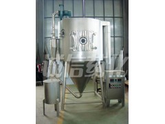 空气经过滤和加热,进入干燥器顶部空气分配器,热空气呈螺旋状均匀地进入干燥室。料液经塔体顶部的高速离心雾化器,(旋转)喷雾成极细微的雾状液珠,与热空气并流接触在极短的时间内可干燥为成品。成品连续地由干燥塔底部和旋风分离器中输出,废气由风机排空 .