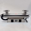 本产品为管道式,两个水口可根据管线走向任选一个作为进水口,一个作为出水口,可根据用户需要放置卧式和立式,为便于更换灯管和石英管一侧要留有与设备等同长度的空间。产品安装后先通水试验,不得漏水,然后打开电源,当确认灯管亮3-5分钟后,(按图一所示)再打开门,这时本机器开始运行。