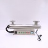 本产品为管道式,两个水口可根据管线走向任选一个作为进水口,一个作为出水口,可根据用户需要放置卧式和立式,为便于更换灯管和石英管一侧要留有与设备等同长度的空间。产品安装后先通水试验,不得漏水,然后打开电源,当确认灯管亮3-5分钟后,(按图一所示)再打开门,这时本机器开始运行。