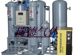 空气储罐的作用是:降低气流脉动,起缓冲作用;从而减小系统压力波动,使压缩空气平稳地通过压缩空气净化组件,以便充分除去油水杂质,减轻后续PSA氧氮分离装置的负荷。同时,在吸附塔进行工作切换时,它也为PSA氧氮分离装置提供短时间内迅速升压所需的大量压缩空气,使吸附塔内压力很快上升到工作压力,保证了设备可靠稳定的运行。