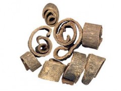 性状 干皮呈双卷筒形、单卷筒形,厚2~8 mm;外表面棕灰色,较粗糙,有时呈鳞片状,较易剥落,有多数皮孔,刮去粗皮现黄棕色;内表面紫棕色,划之显油痕;质坚硬,不易折断;断面外侧灰棕色,内层紫褐色或棕色,有油性,有的可见多数光亮小结晶。枝皮、根皮单筒状,有的根皮弯曲。气香,味麻辛辣、微苦。