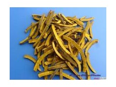 性状 关黄柏树皮呈板片状,栓皮已大部刨去,厚1.5~4mm。外表面绿黄色,有不规则纵脊和沟纹;内表面灰黄色。质坚韧,折断面呈刺片状,鲜黄色,纤维层可成片剥离。微有香气,味极苦,有粘性。