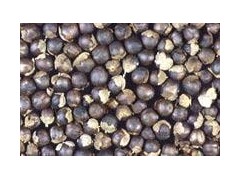 性状 果实球形,直径4~6mm。表面灰黑色或黑褐色,被灰白色粉霜状茸毛,有纵向浅沟4条,顶端微凹,基部有灰白色宿萼及短果梗。宿萼长为果实的1/3~2/3,5齿裂,其中2裂较深,密被茸毛。体轻,质坚韧,不易破碎。横切面可见4室,每室有种子1枚。气特异而芳香,味淡、微辛。
