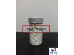 食品级二水氯化钙为白色立方结晶或粉末,有强吸湿性,易溶于水和乙醇。其水溶液呈中性或微碱性,具有腐蚀性。溶于醇,不溶于醚。加热至260摄氏度时脱水变成无水物,其他化学性质与无水氯化钙相似。
