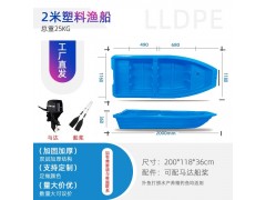 版型大气,简约环保出行,给予您海的呼吸 防水船身,安全放心出行 可承受3个常规成年人的重量,承重你安心 心动不如行动,参考参数如下: 2米渔船 规格:200*118*36cm 材质:100%全新LLDPE料 配件:电动马达、船桨 颜色:蓝/黄/红 特点:更便利、灵活、快捷、经久耐用、重量轻、浮力大、 速度快、抗冲击力强、稳定性强、安全 用于捕捞、收捕、钓鱼、水上娱乐,船身设计美观,质轻防腐, 适用于各大水产养殖业内的船舶。
