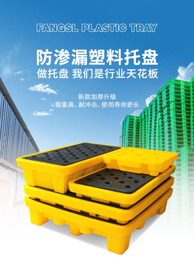 防渗漏托盘,也叫盛漏托盘、防溢漏托盘、盛漏卡板、防溢出托盘、油桶托盘、防泄漏托盘、盛漏油桶托盘、接油盘,是为了防止和控制现代工厂、仓储、物流、运输业大量使用的油桶和化学品桶以及其他油品和化学品容器泄漏而设计开发出来的聚乙烯材质容器。主要用于化学品的分装和存储,可以防止产生环境污染,保护人身安全。