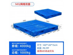 8、应用场景:双面塑料托盘是托盘结构中常见的一种托盘结构。双面托盘顾名思义是指正反两面均可使用的托盘。双面托盘在化工行业中使用最为广泛。除此之外,双面托盘(双面塑料托盘)可配合码垛机的使用,经常用于货物的码垛,在食品饮料、面粉深加工等行业中较为常见。