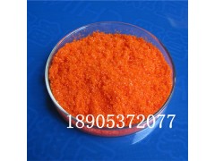 外观性状:桔红色单斜晶系细小结晶,易溶于水,有潮解性,密闭保存。