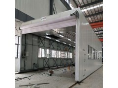 整体移动式喷漆房主要应用于大型工件的打磨或喷漆工作中,方便收集工作中产生的粉尘或废气。在一般情况下每套房体设设置有2-3个排风净化工位,哪个工位上的工件需要喷漆时,房体则行走移动到那个工位,其他工位可以继续打磨工作,待房体内的工件喷漆完毕后,再控制移动房体行走到打磨完毕的工件工位,如此设计可以实现大型工件的不间断连续喷漆工作。房体为钢结构构造,房体立柱下面设置有两台电动驱动行走机构,行走机构沿地面轨道行走。移动房体两端设置有电动卷帘大门,房体行走时,大门升起,待到达指置时,大门降落关闭。大门与行走机构由电气控制部分连锁控制,大门升起后,房体才可移动行走。