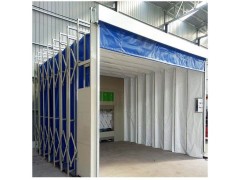伸缩式喷漆房由伸缩式喷漆房和干式喷漆柜两部分组成。其长宽高可以根据客户要求设计和制作。伸缩式喷漆房通称伸缩房。伸缩房的结构包括伸缩移动房体、伸缩轨道、照明系统、伸缩警示系统、电控系统组成。移动房体由驱动龙门架、从动伸缩架、伸缩连杆组成。