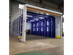 伸缩移动式喷漆房是我公司的***产品,它适用于各种大中型设备及零部件的打磨,喷漆及烘干作业。展开前室,形成一个封闭或半封闭空间,在伸缩移动式喷漆房中进行喷漆或打磨作业,收缩前室后形成一个敞开式空间,方便进行工件转运及翻转工作,*地降低了工人劳动强度和工作效率。喷漆房整体为框架式结构,表面喷塑,框架之间由阻燃pvc布链接密封,颜色内白外兰,外形美观大方,安装快捷方便,价格低廉,运行平稳安全***。前室可伸展3-60米不等,宽度可做成2-25米不等,它净化***漆雾处理和打磨粉尘处理率,*地提高了工人喷漆工作环境质量,***广大客户***和亲睐。