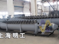 2、沉没式分级机:溢流端的螺旋叶片全部浸入溢流面以下。主要适用于溢流粒度为0.15-0.07mm的矿石分级。